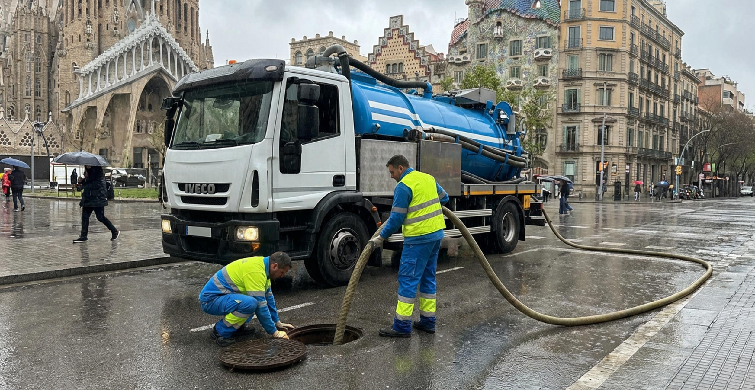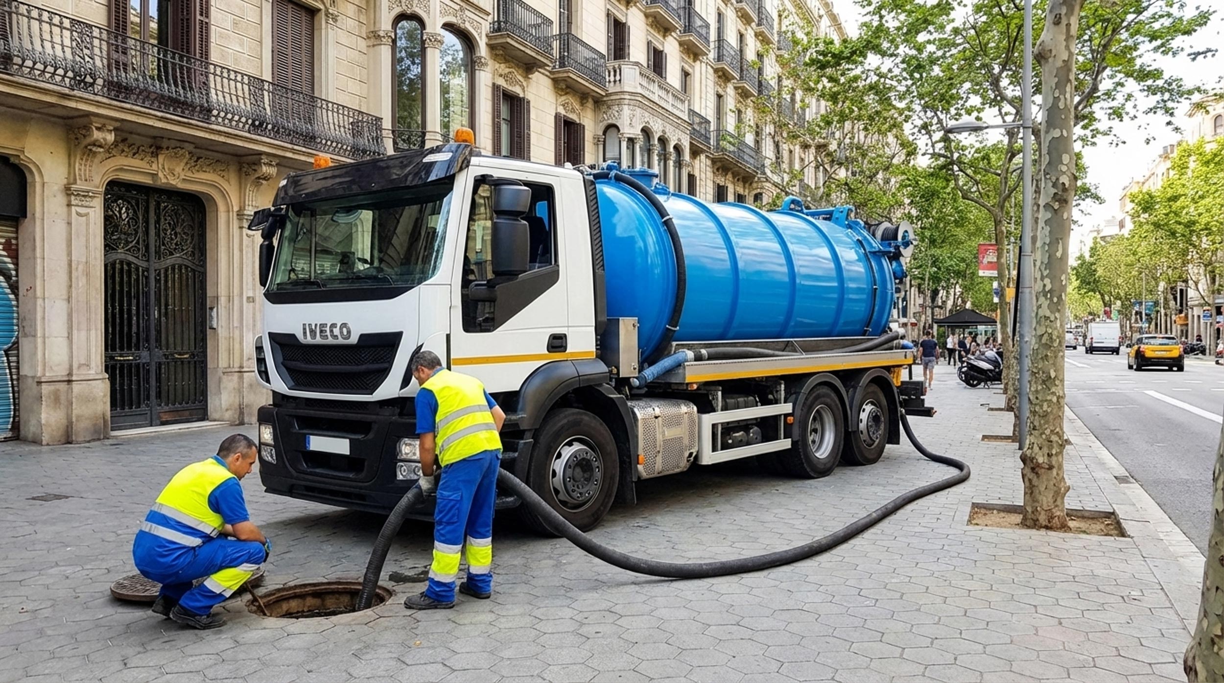 Desatascos en Barcelona con camión cuba y agua a alta presión.